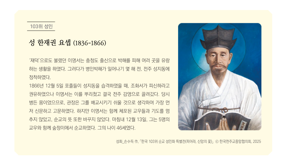 103위 성인인 성 한재권 요셉에 대해 공유하겠습니다.