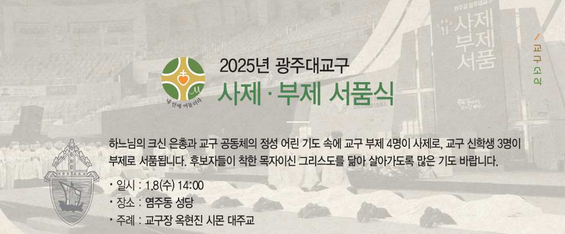 광주대교구 사제 부제 서품식 안내 우리나라는 세 개의 대교구가 있죠. 서울 대구 광주 오늘은 🚨광주대교구의 사제서품식 정보를 공유하겠습니다. 광주대교구의 25년 서품식 🚩진행 장