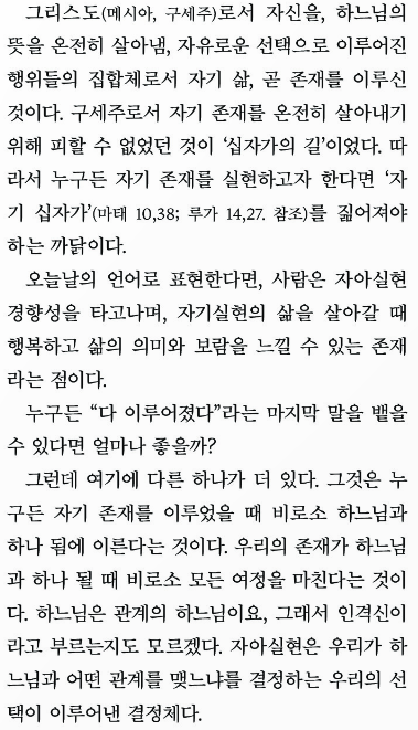 오늘은 전주교구의 24년 12월 주보에 나온 예수님께서 십자가에서 돌아가시기 전에 하신 말씀 "다 이루어졌다." 말씀의 의미를 생각해 보겠습니다.