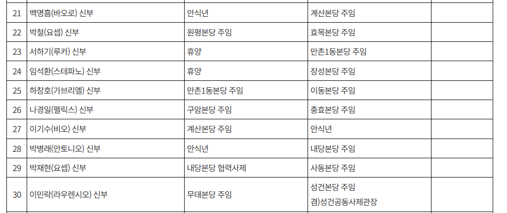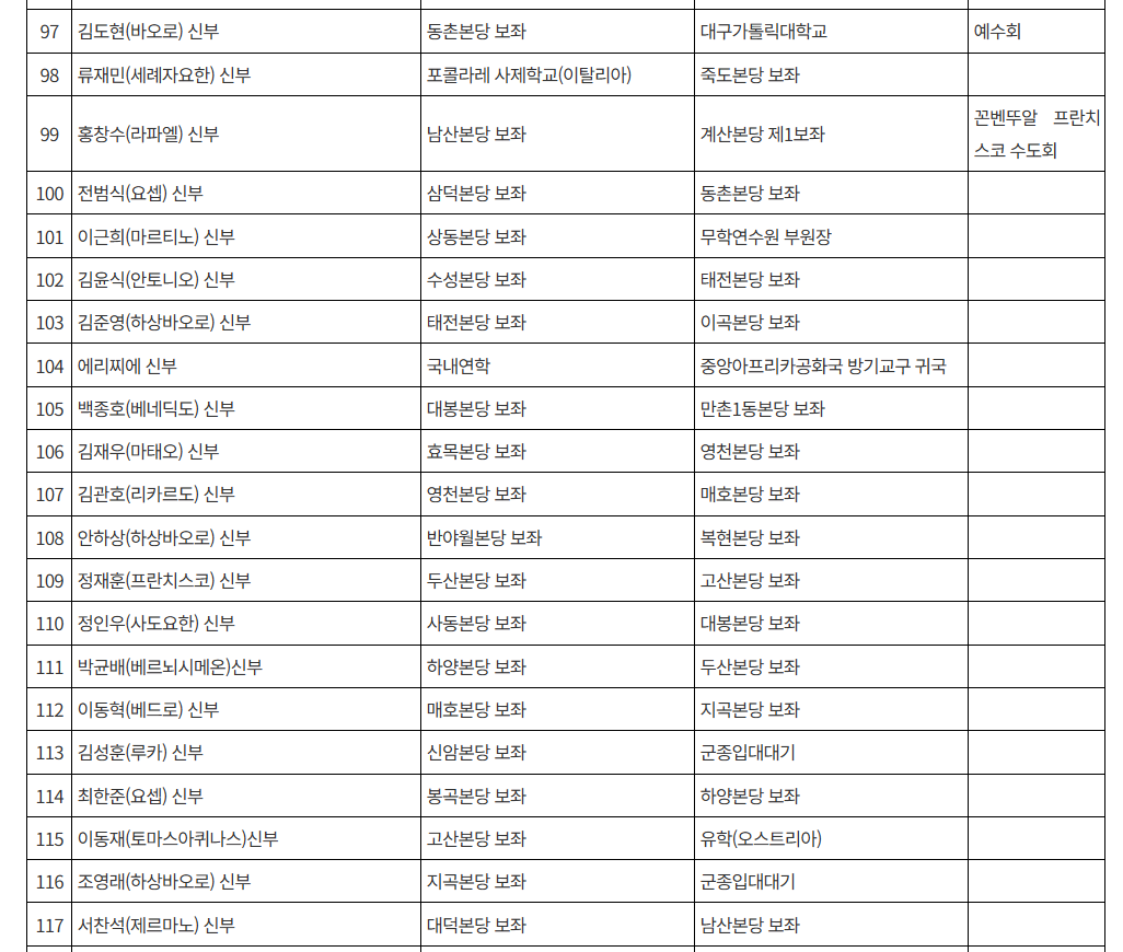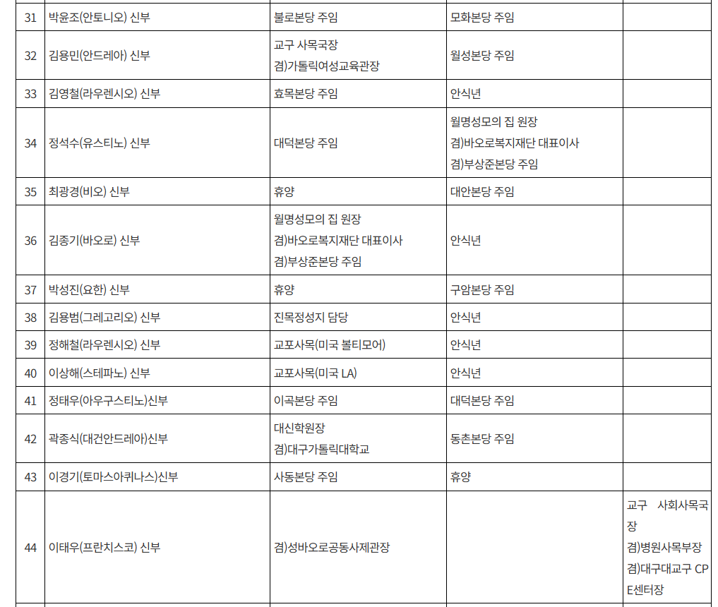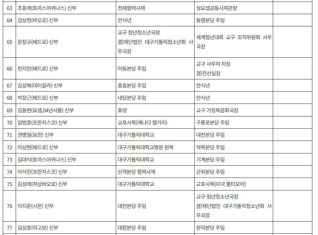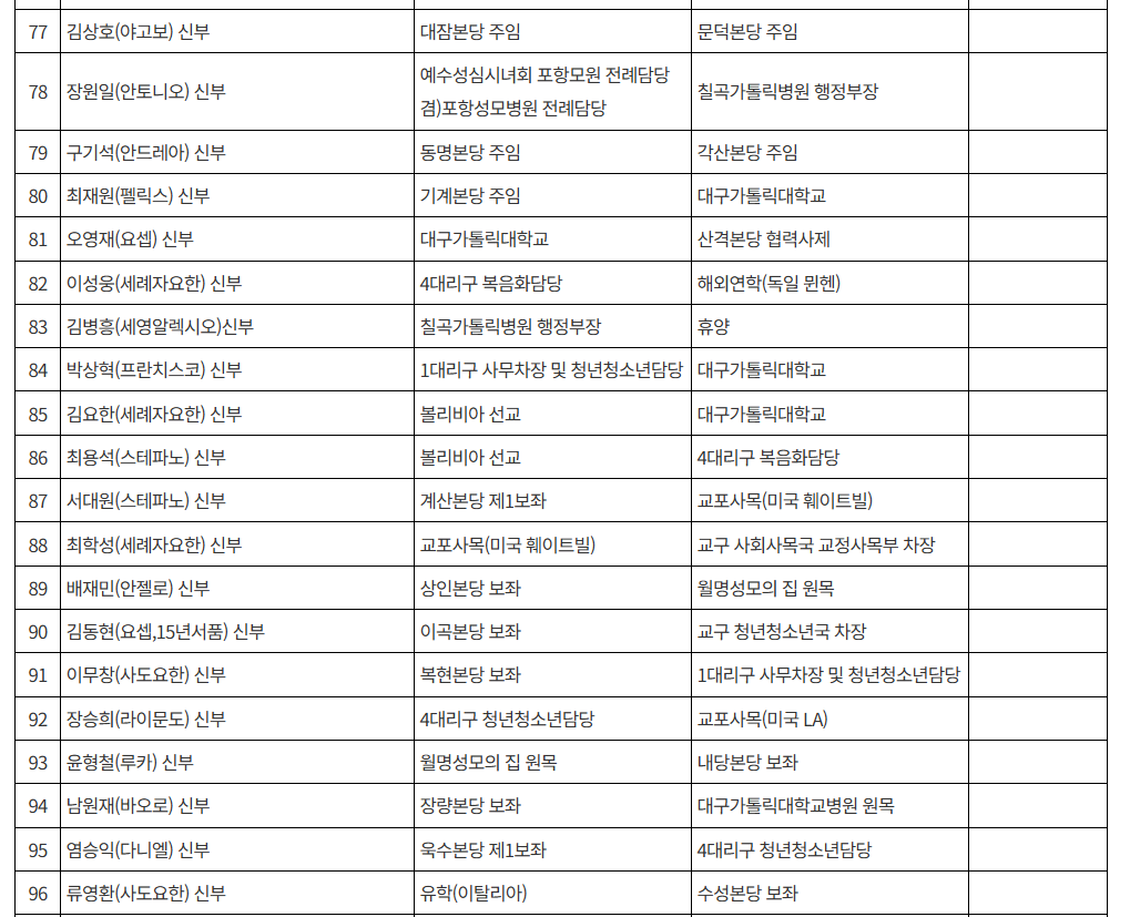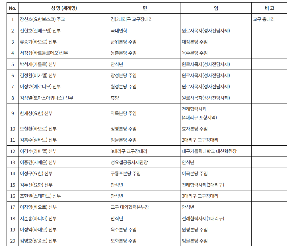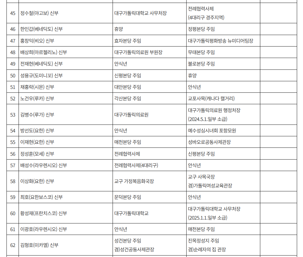 | 대구대교구 사제이동 명단 <25.1월8일 발표> (0) | 2025.01.08 |