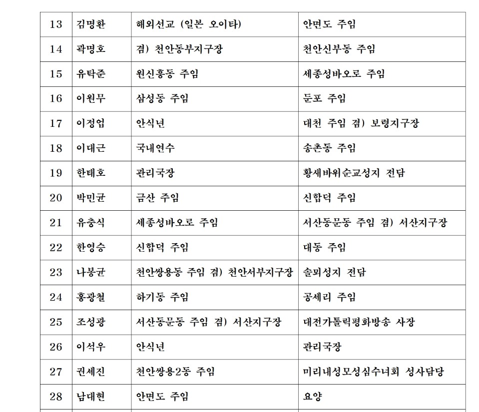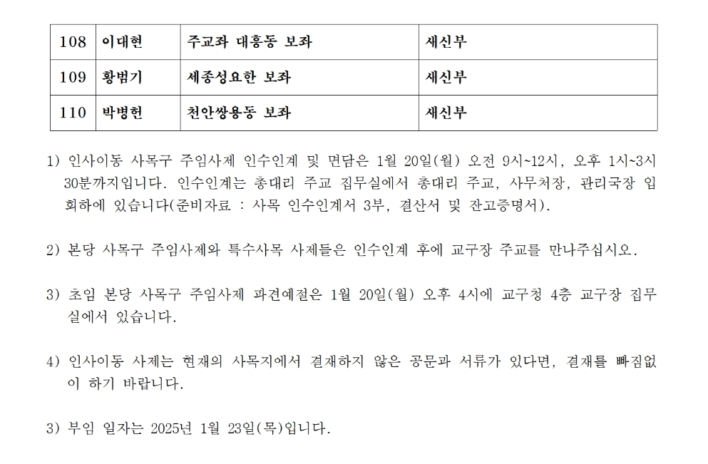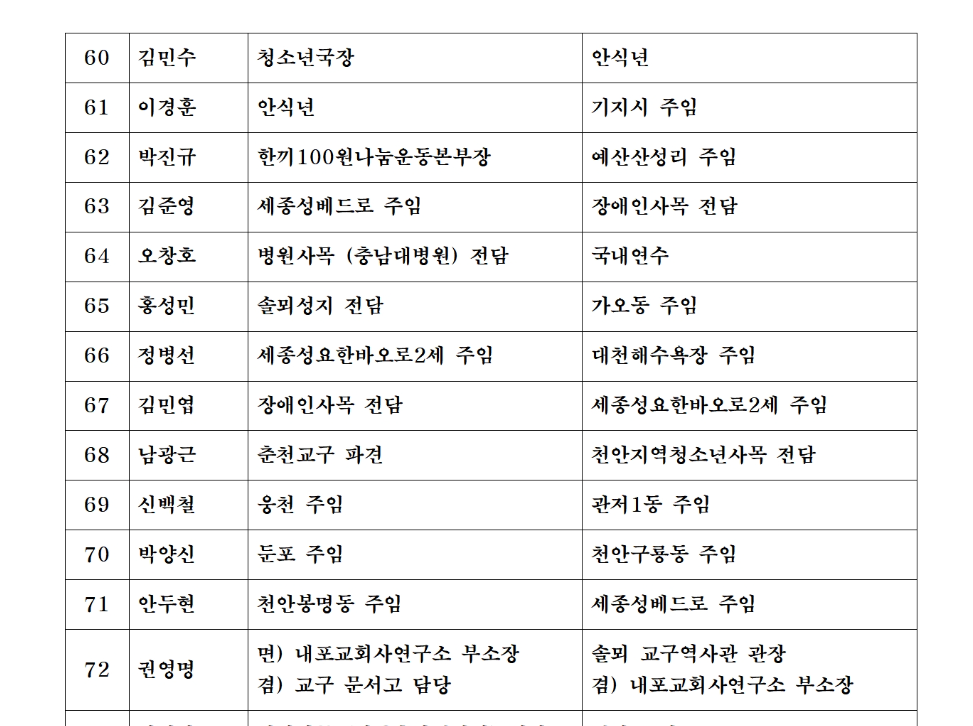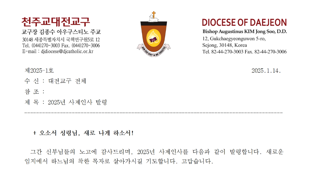 | 대전교구 사제인사발령 110명 확정 <25년1월14일> (0) | 2025.01.14 |