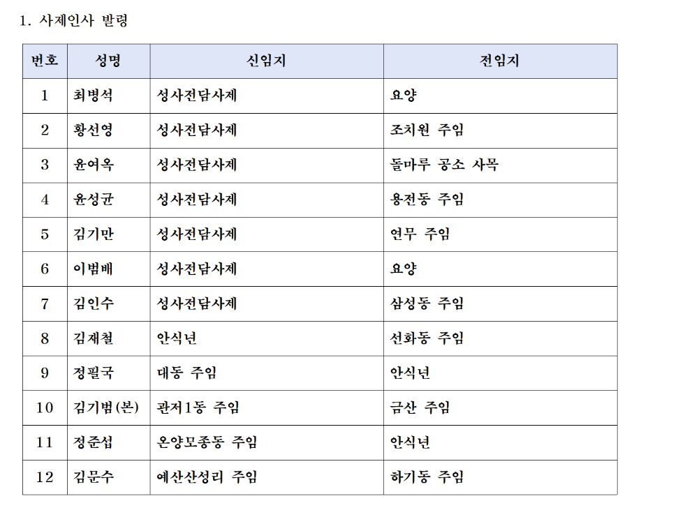 천주교 대전교구 사제이동