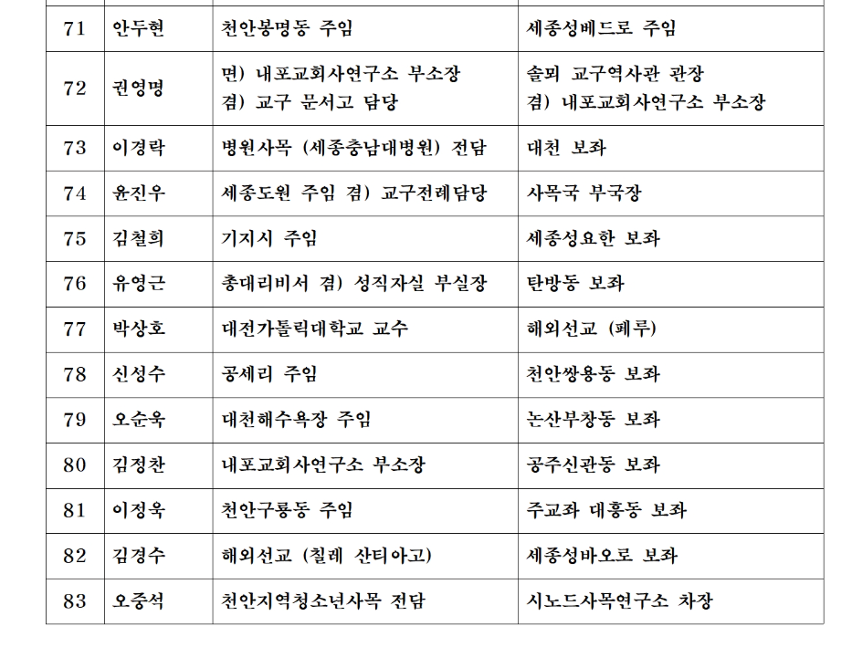 천주교 대전교구 사제이동