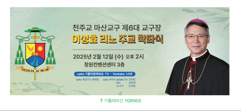 리노 주교님 착좌식은 가톨릭평화방송과 유튜브 생중계 됩니다.