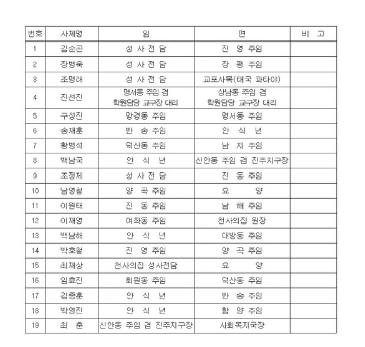 마산 사제인사 자세히 <1월 17일부터>