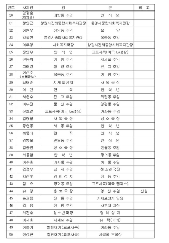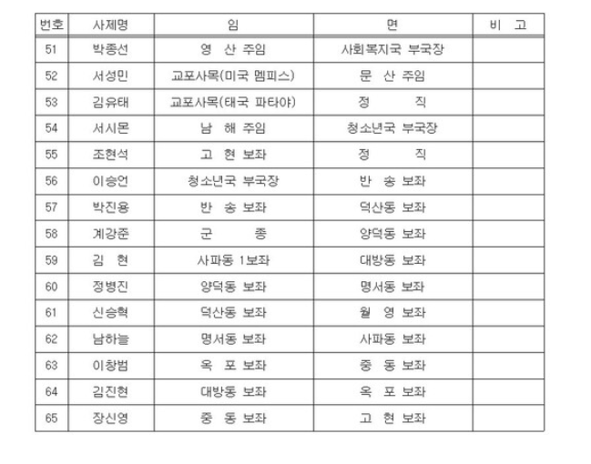 마산교구 사제인사이동