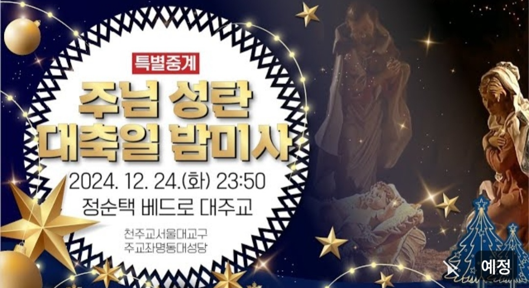 오늘은 2024년 12월 24일 크리스마스이브입니다. 크리스마스 전야미사 미사시간과 생중계 방송으로 미사참여 할 수 있도록 정보 드릴게요.