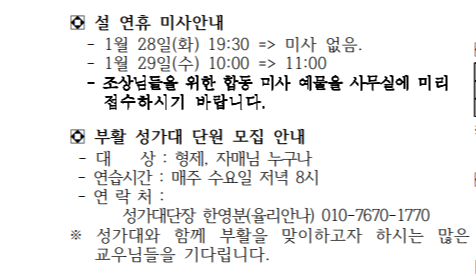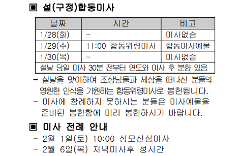 명절당일 설날 미사시간표