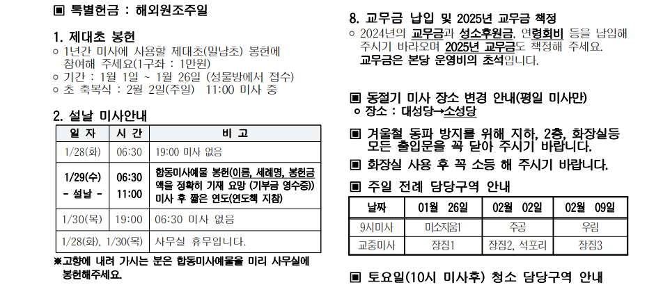출처 25년 1월, 각 본당주보 안내