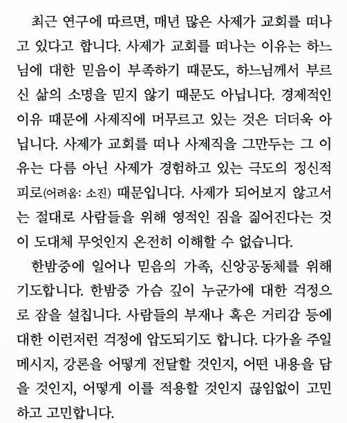 2024년 12월 전주교구 주보에 공유된 글을 공유합니다. 최근 연구에 따르면, 매년 많은 사제가 교회를 떠나고 있다고 합니다.
