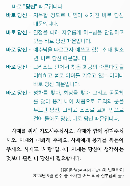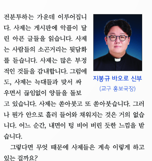 2024년 12월 전주교구 주보에 공유된 글을 공유합니다. 최근 연구에 따르면, 매년 많은 사제가 교회를 떠나고 있다고 합니다.
