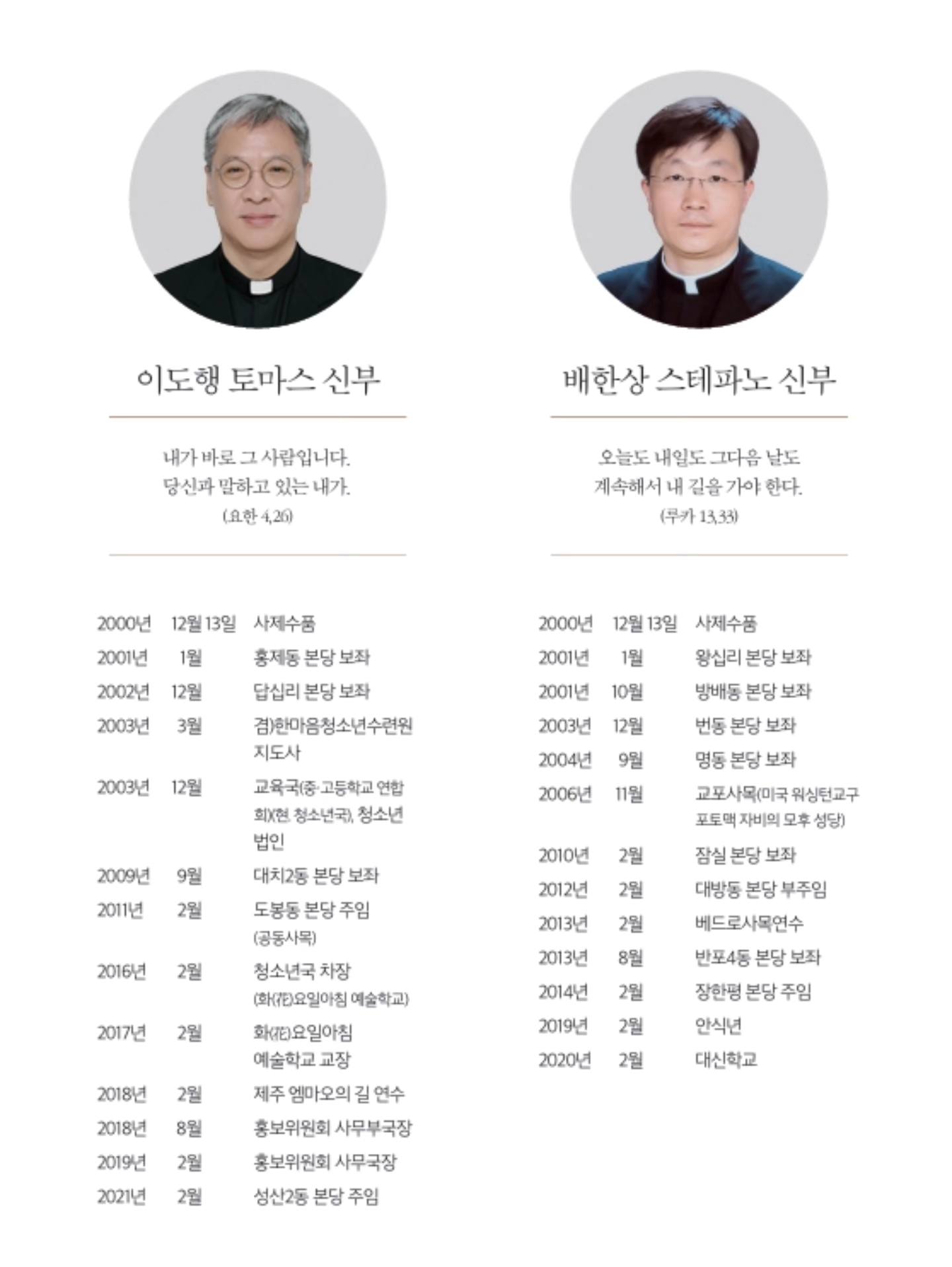 기도와 축복을 함께 보내 주세요. 아래에서는 은경축 신부님과 신부님께서 25년동안 걸어오신 길을 소개합니다.