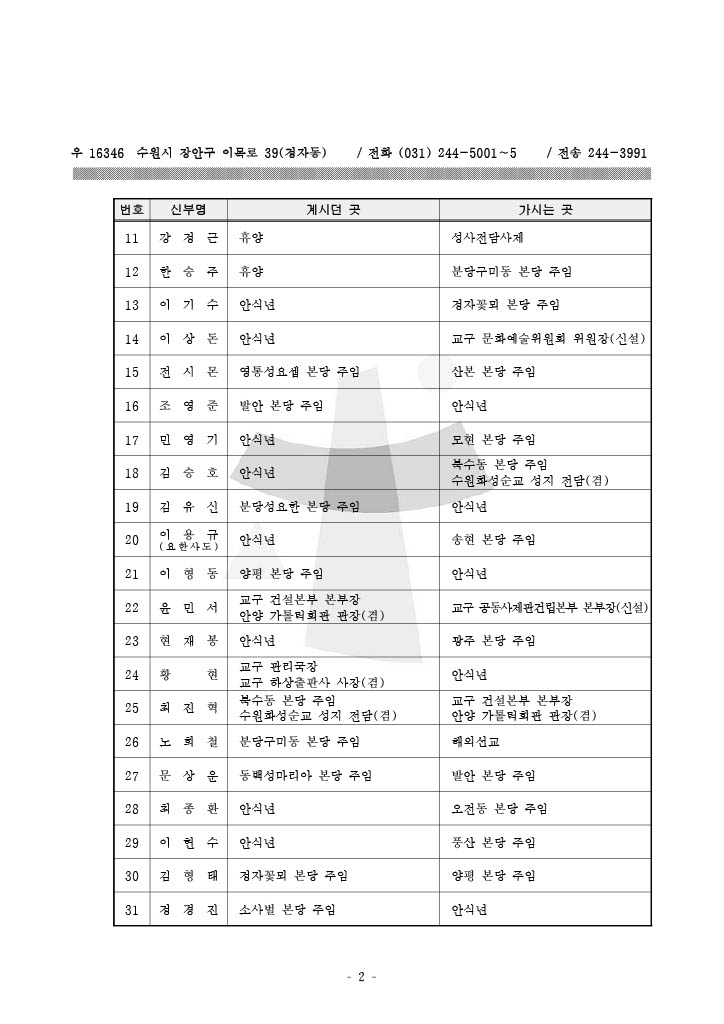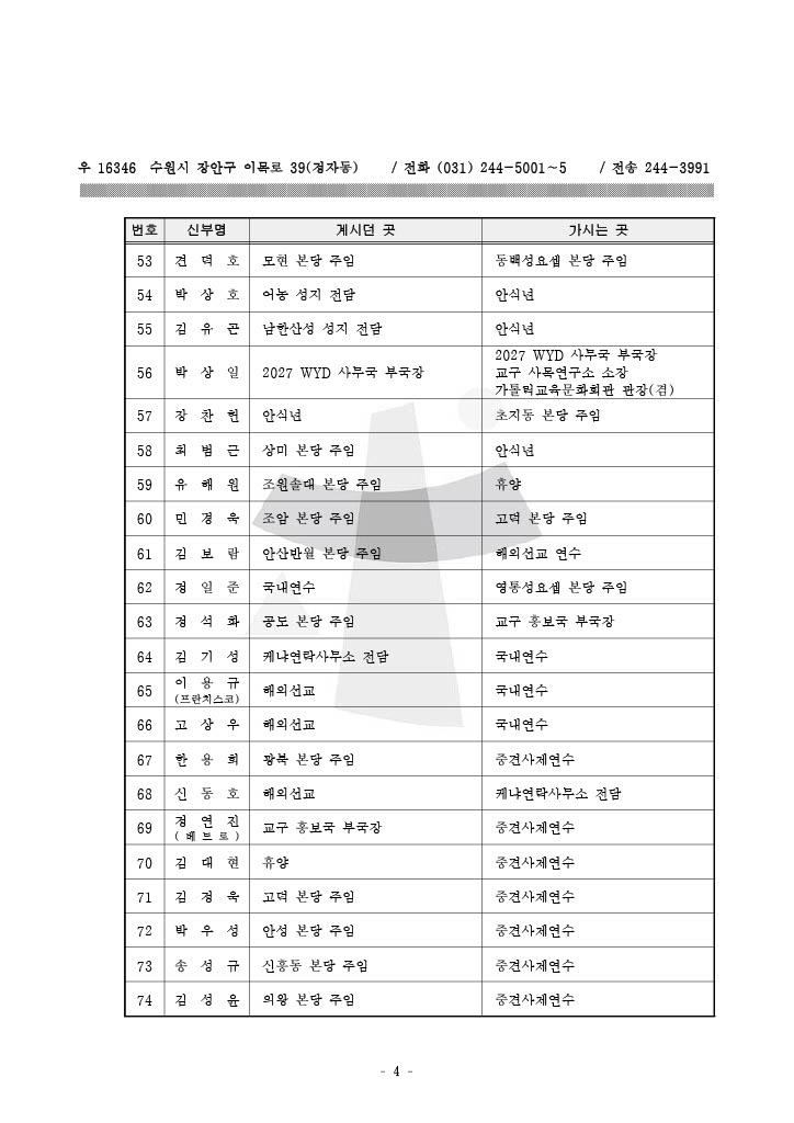 📢 수원교구 사제이동
