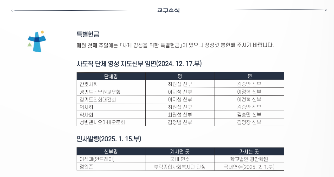 수원교구 84명 사제 <24.12.6> 인사발령입니다.