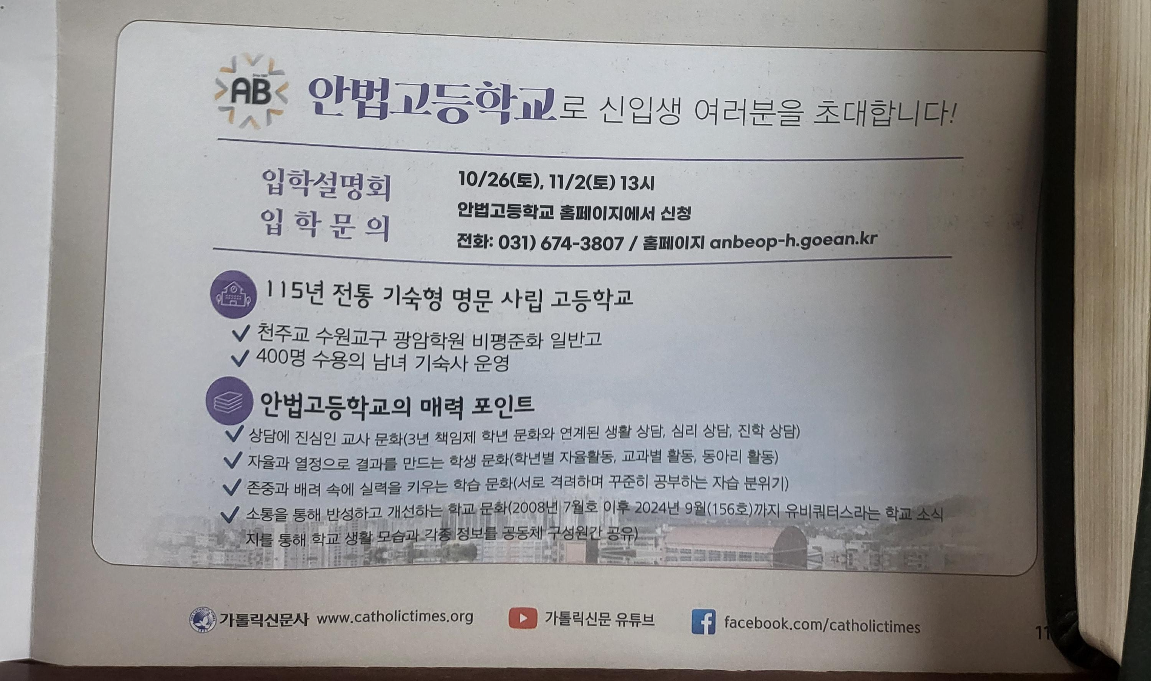10월 13일 주보에 나온 안법고등학교