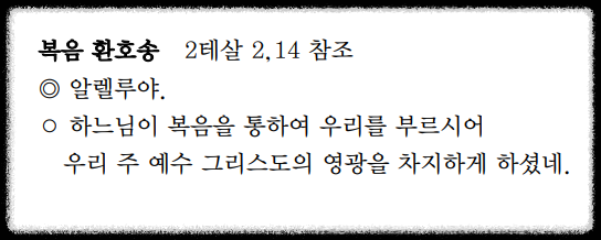 알렐루야. 하느님이 복음을 통하여 우리를 부르시어 우리 주 예수 그리스도의 영광을 차지하게 하셨네.