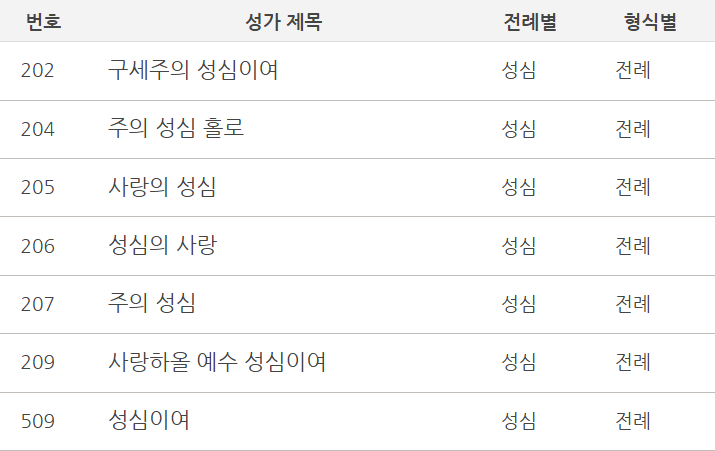 가톨릭 성가책에 있는 성심곡을 아래에서 소개합니다.