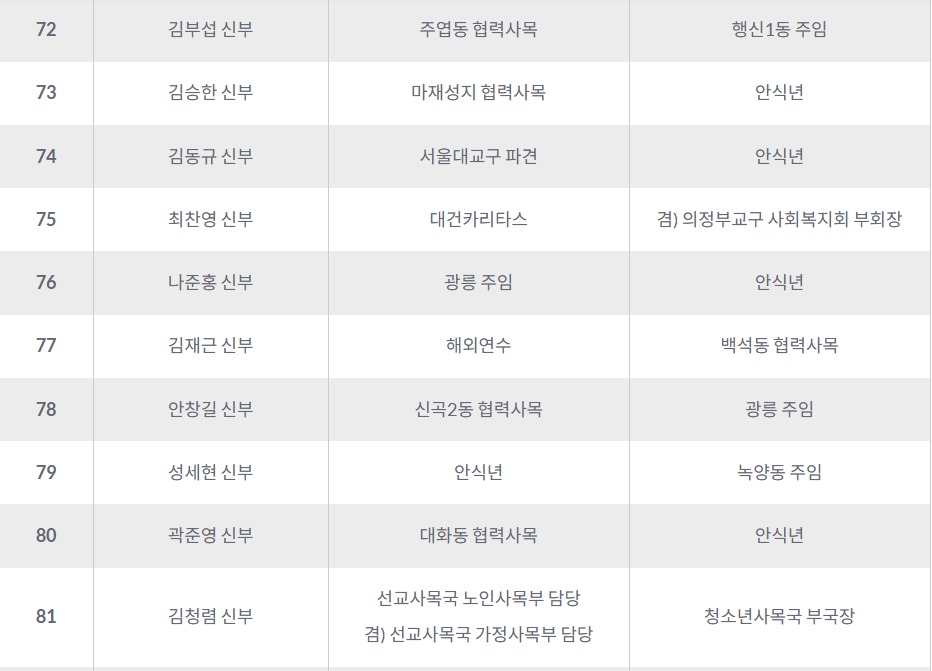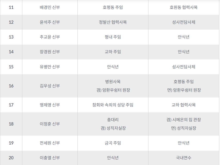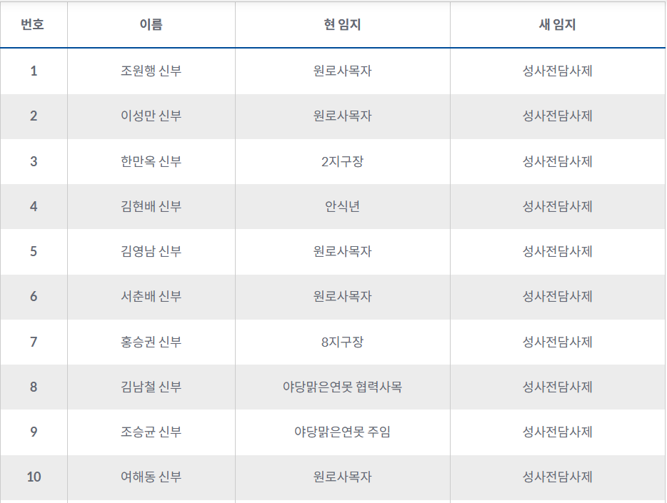 | 서울대교구 203명의 사제이동확정 <2월 5일 공지자료> (0) | 2025.02.05 |