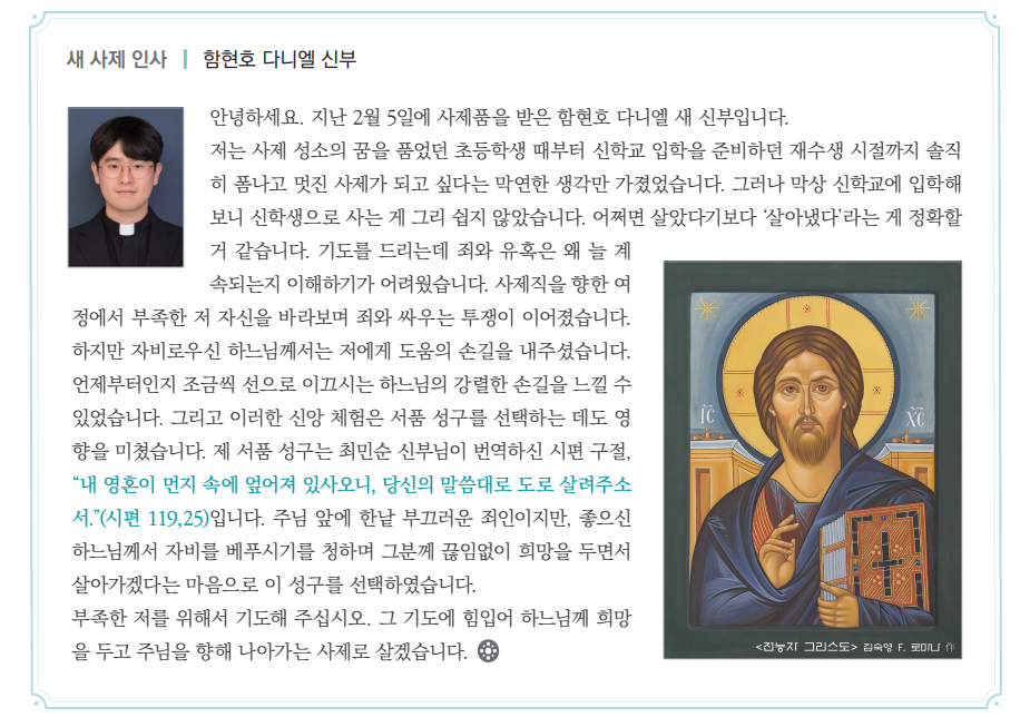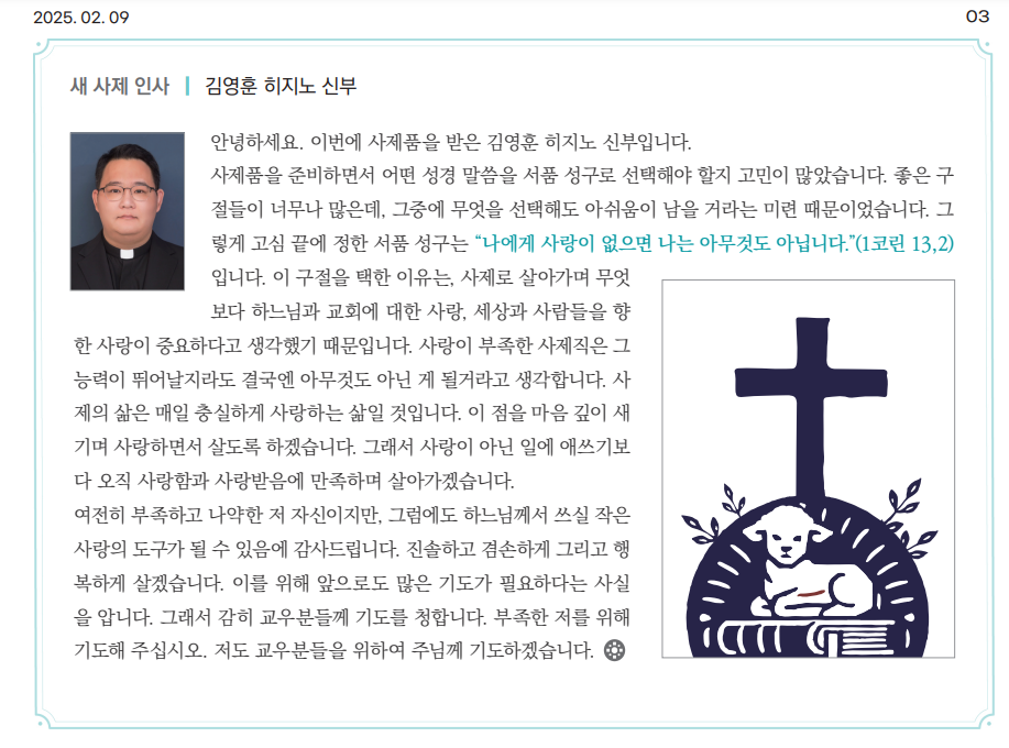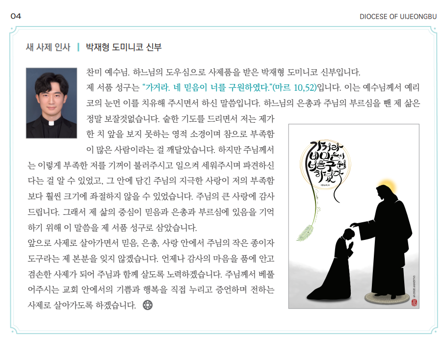 새사제 소감문 출처 25년 2월 9일 의정부주보 - 의정부 주보를 확인하시면 더 좋습니다.