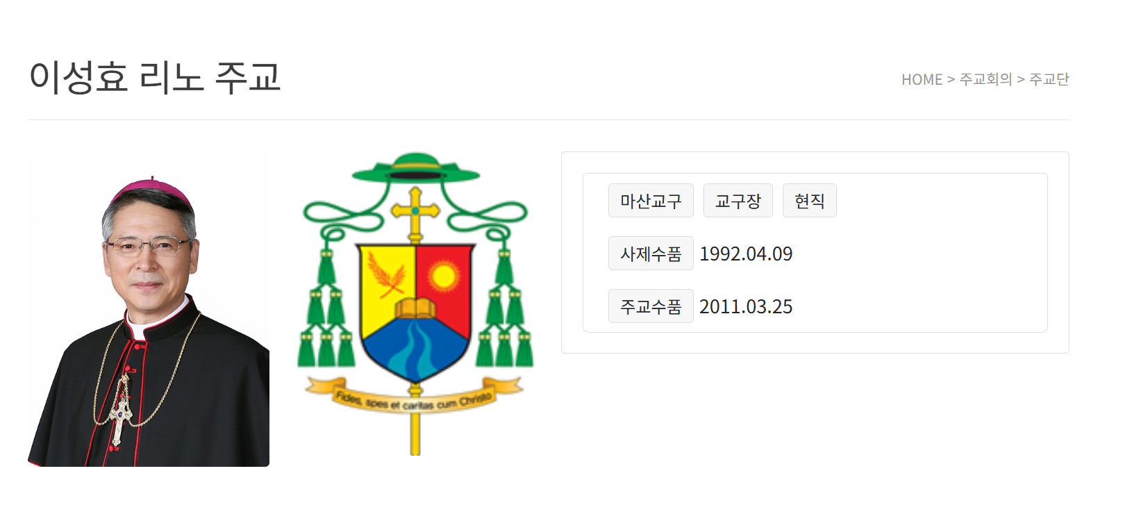 이성효 리노 주교님의 마산교구 교구장 임명을 진심으로 축하드립니다.