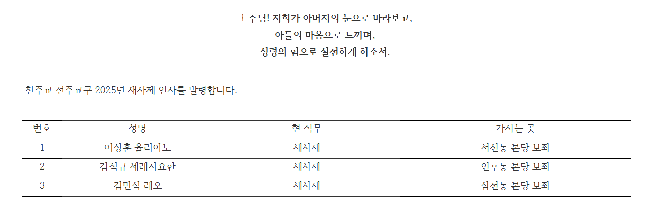 | 전주교구 사제이동 전체 <25년1월> (0) | 2025.01.09 |