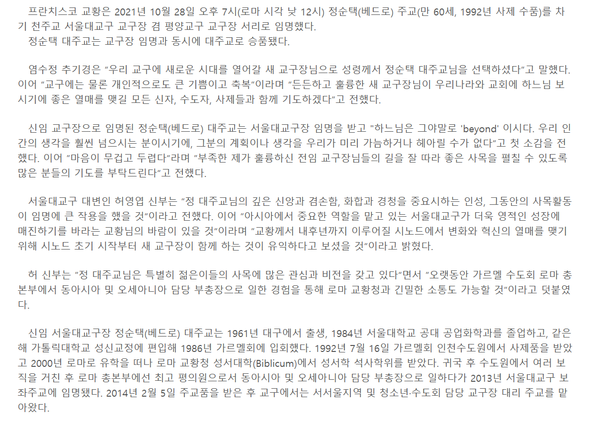 🩷정순택 대주교님 프로필 알아보기🩷