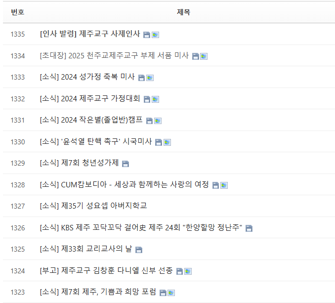 ✅출처 천주교 제주교구 공식홈페이지 게시판 교구소식