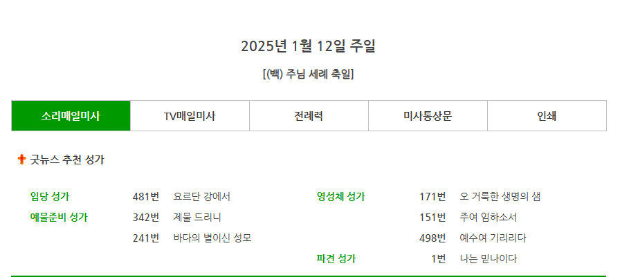 <주님세례축일> 성가번호 전례 화답송 복음환호송 강론