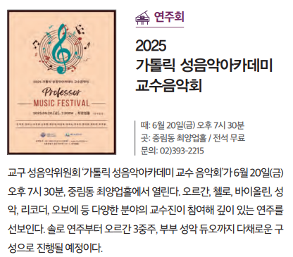 | 행사명 | 2025 가톨릭 성음악아카데미 교수 음악회 |