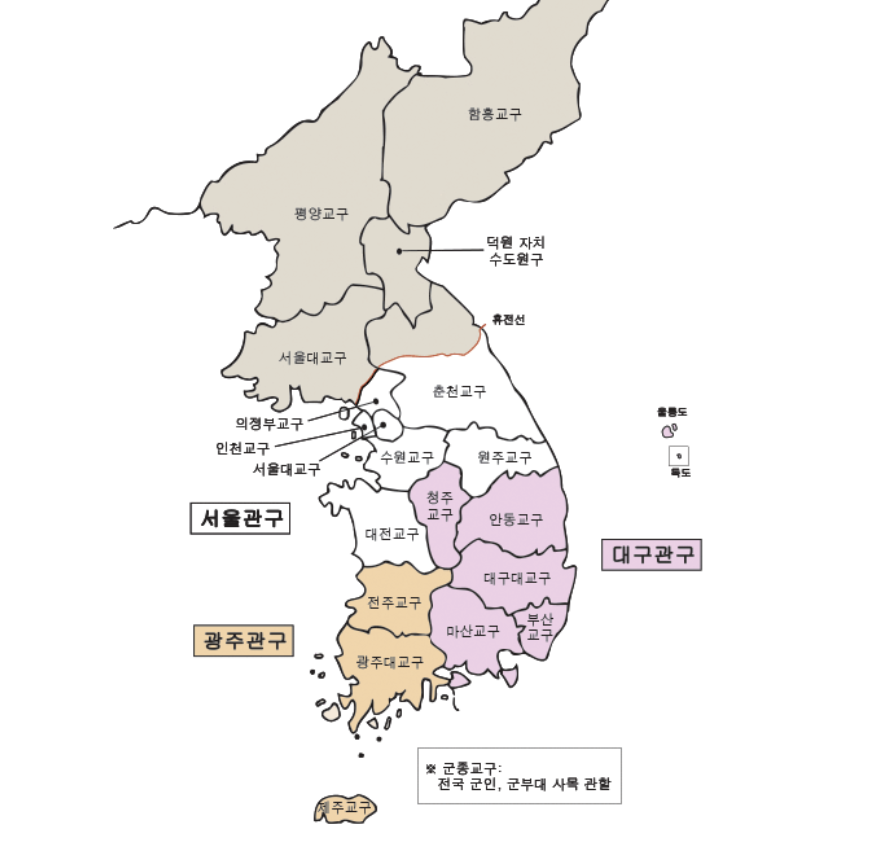 한국에는 대교구 3개를 포함에 총 16개의 교구가 있다.