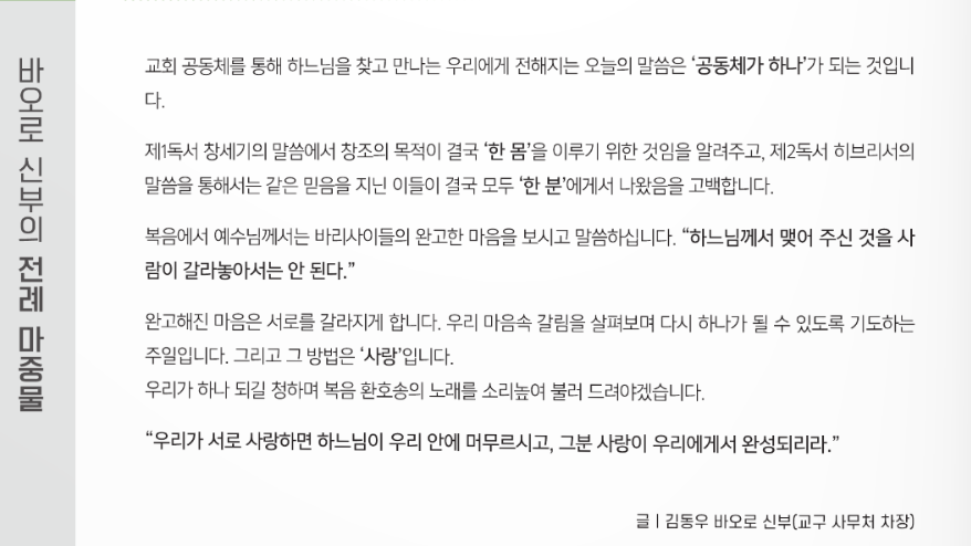 | 평신도 주일 강론한 <김태희>강론 자료 전체 읽어보기 (2) | 2024.11.16 |