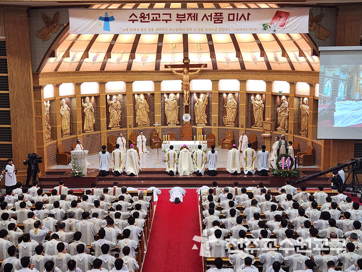 수원교구 부제 서품미사 23년 12월 7일 정자동 주교좌성당에서 교구장 이용훈 주교 주례, 사제단 공동집전으로 거행됬다. 이 날 미사를 통해 신학생 7명이 부제로 서품됐으며, 새 부제들은 24년 12월 사제로 서품될 예정이다
