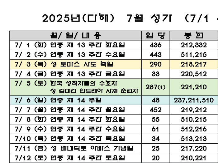 | 2025 7월 다해, 일반본당 성가번호 가사 곡제목 공유 (0) | 2025.07.06 |