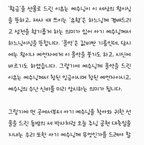 + 동박박사 세사람이 예수님께 드린 세가지 선물은 무엇일까요?